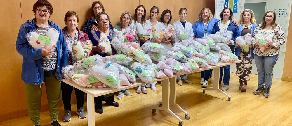 L’associació Artesanas de Corazón fa el donatiu de vuitanta-cinc coixins de cor per a les dones operades de càncer de mama de l’Hospital Universitari d’Igualada