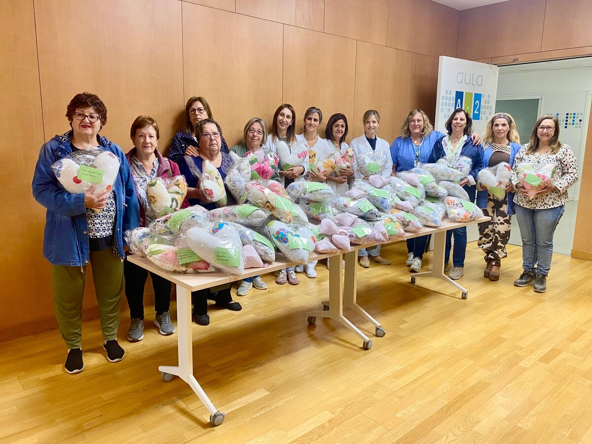 L’associació Artesanas de Corazón fa el donatiu de vuitanta-cinc coixins de cor per a les dones operades de càncer de mama de l’Hospital Universitari d’Igualada