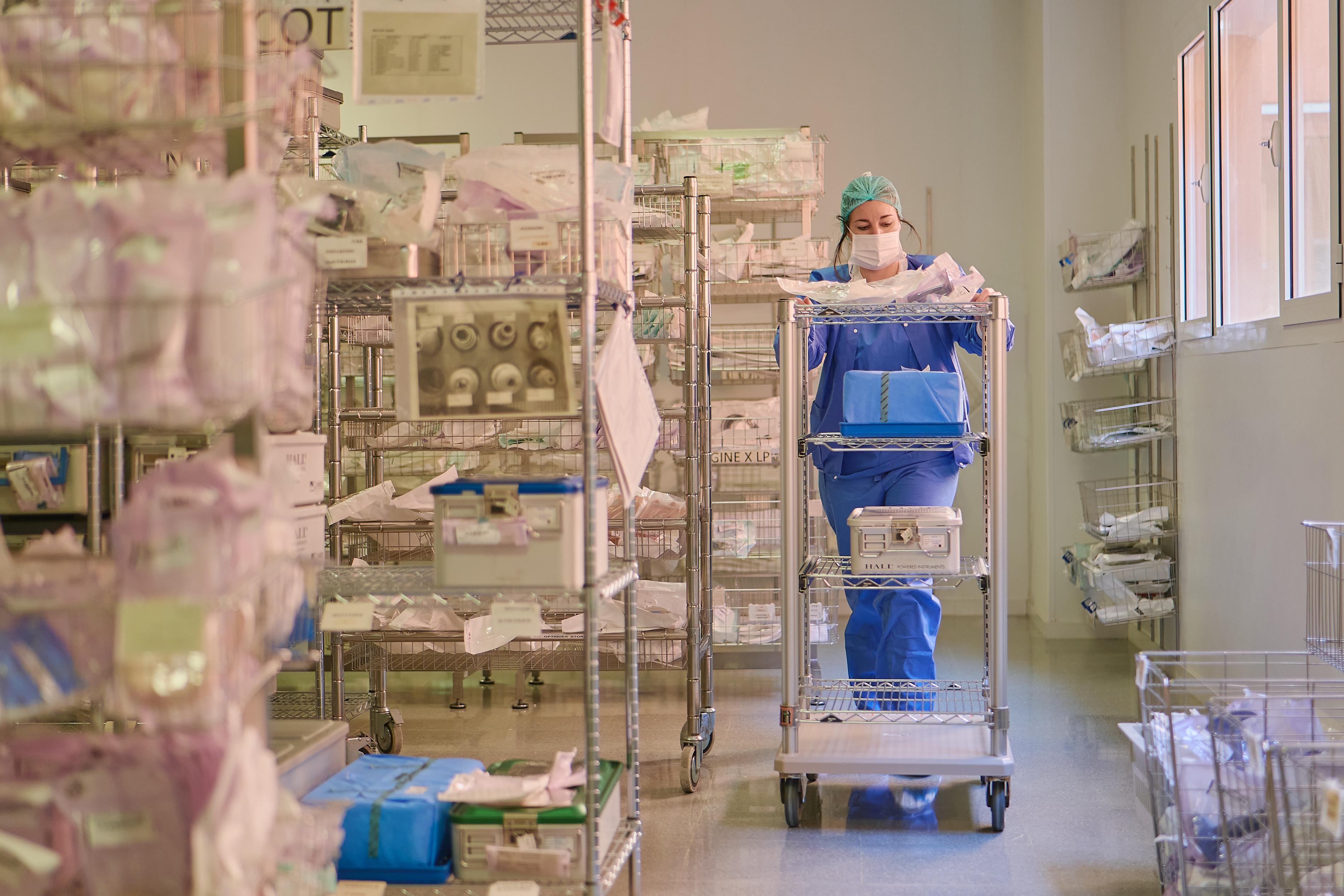 Ana Criado: Tot l'instrumental i totes les caixes de quiròfan tenen una traçabilitat completa: sabem en quina intervenció s'han utilitzat, quants rentats i esterilitzacions han passat, quin programa s'ha fet servir... És com conèixer tota la vida de l'instrumental. A més, tots els processos de rentat i esterilització estan informatitzats, cosa que reforça la seguretat del pacient.